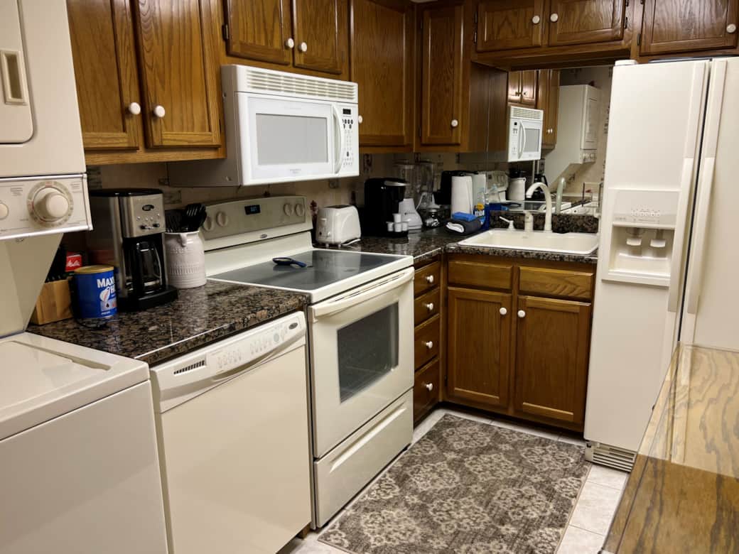 Coffee machine, Cooking utensils, Dishwasher, Kitchen stove, Microwave, Oven, Refrigerator, Toaster